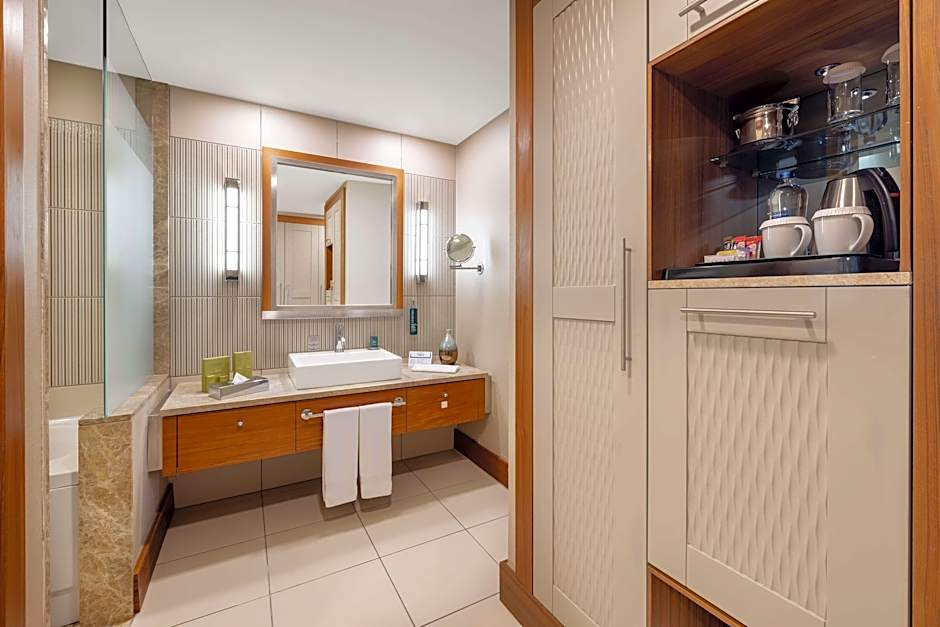 Features a separate bedroom and combined kitchen/lounge area. Some suites have pool views.